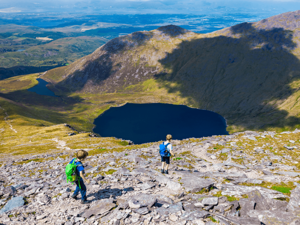 This is one of Ireland’s most dramatic hikes winds through a glacial valley between the McGillicuddy’s Reeks and Purple Mountain. Pass five sparkling lakes and dramatic cliffs. Wide path with moderate climbs; making it one of the most accessible Killarney National Park hikes for families and groups and the scenery makes it feel easier than the stats suggest. A short 15–20-minute drive from The Brehon Hotel to Kate Kearney’s Cottage trailhead.