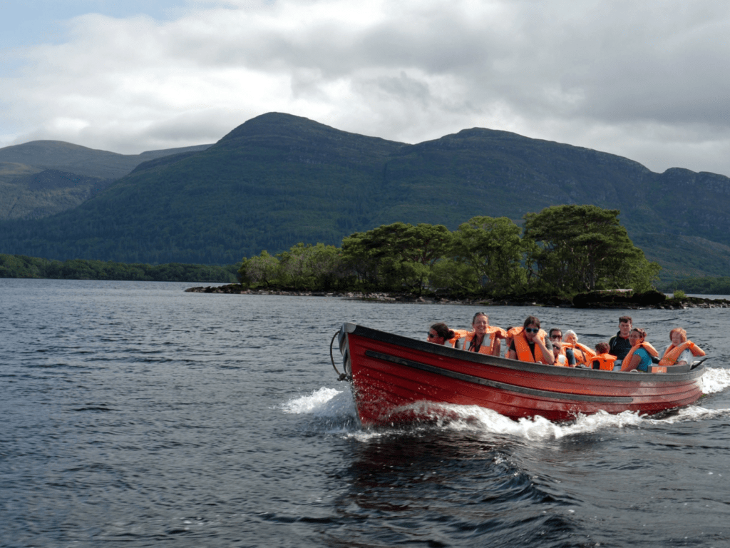 Lake Tours from Ross Castle, perched on the edge of Lough Leane, Ross Castle is the main departure point for boat tours. Tours run morning and afternoon throughout the summer. You will pass wooded islands, views of the Macgillycuddy Reeks and the ruins of Innisfallen monastery. Innisfallen island is a small island with the ruins of a 6th century monastery. It is a popular stop on Killarney lake tours and is a great option if you are interested in the history of Killarney. Most tours last about an hour and are suitable for all ages.